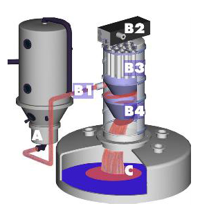 氣動真空輸送設備是采用壓縮空氣作為動力源產生負壓實現對各種物料的輸送,其不需要機械式真空泵,具有結構簡單、體積小、免維修、噪音低、控制方便、消除物料靜電和符合GMP要求等優點。真空發生器產生的高真空,使被輸送的物料杜絕了分層現象,保證了混合物料成分的均一性,是壓片機、混合機、填充機、干法制粒機、包裝機、粉碎機、振動篩及反應釜等設備自動上料的使用設備。 工作原理: 真空輸送設備在真空下形成一股氣流,在這種氣流作用下被輸送的物料瞬間通過吸料的軟管或管子將散裝物料輸送到另一個容器中。由于物料在輸送過程中始終處于真空狀態,因此,即使發生輸送管道發生泄漏,物料也不會泄入到周圍的環境中。 其工作方式:1、氣動控制器控制真空泵B2啟動,在分離倉內產生真空,迅速將空氣和物料從A(進料位置),經軟管或管子從B1(吸料口)進入到B4(真空輸送設備)中,從而達到輸送物 料的目的。2、分離倉內依靠B3(過濾倉濾芯)把空氣與物料分離,被輸送的散裝物料保留和收集在分離倉內。當輸送細小粉塵時,其特有的旋風集塵器可起到很好的效果。3、氣動控制器控制真空泵B2關閉時,輸送器內的壓力達到平衡,物料經出料倉B4輸送到料倉C的位置。4、出料時,氣動控制器自動控制反沖氣囊吹掃過濾倉濾芯,使其可被清洗再生使用。輸送粘稠物料時,可選用活塞振動器等助流器來提高出料效率。5、最后控制出料艙關閉,整個輸送流程再次啟動。